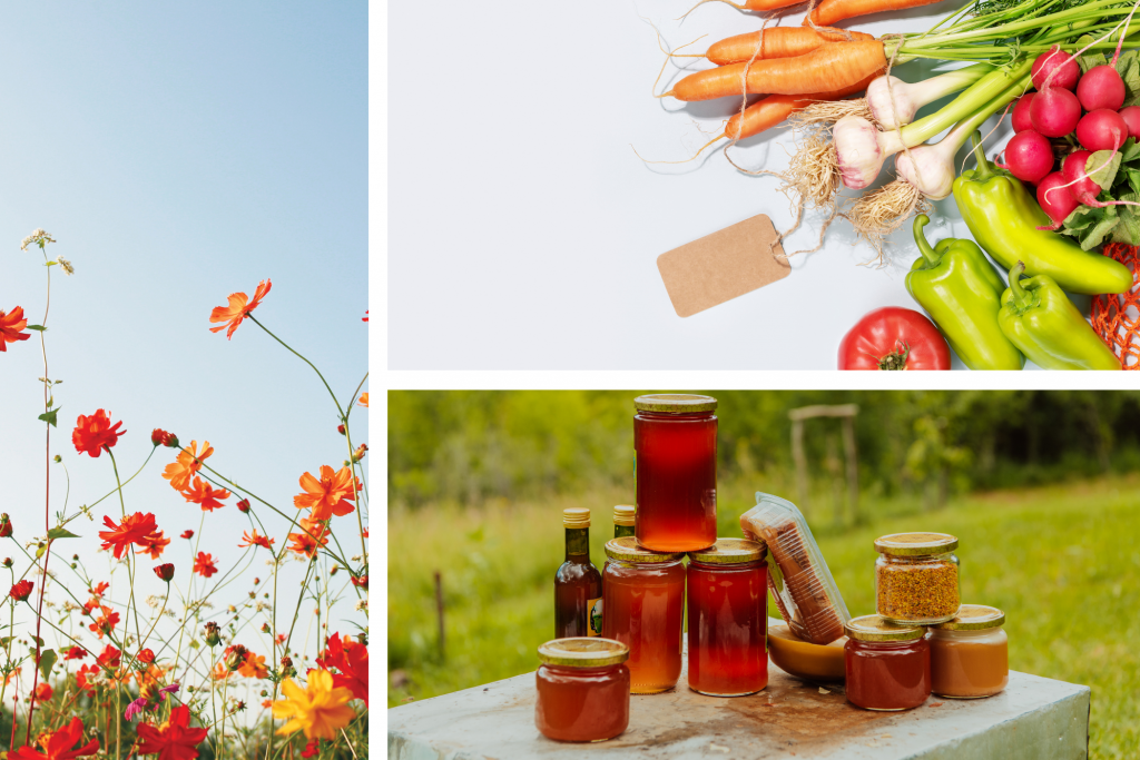 Seasonal vegetables, flower, and honey products